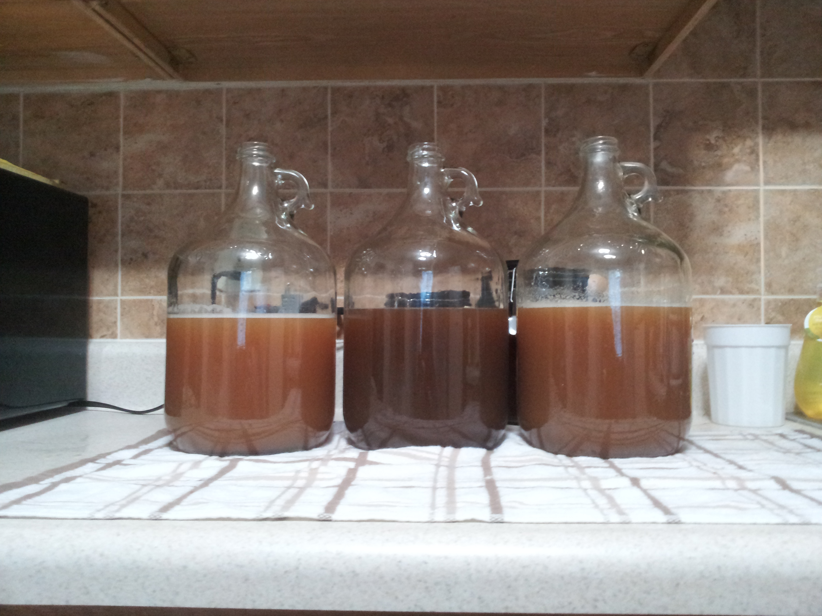If you want to know what the alcohol content of your brew is after it is finished, you have one of two methods, either a refractometer, or a hydrometer. I use a hydrometer because it is much cheaper, but it’s a little less accurate, and if you don’t get specific gravity readings before AND after, it is nearly useless. That is exactly what happened this time, I forgot to measure the specific gravity before setting my containers to ferment, so I’ll never know the alcohol content besides relative strength by taste.